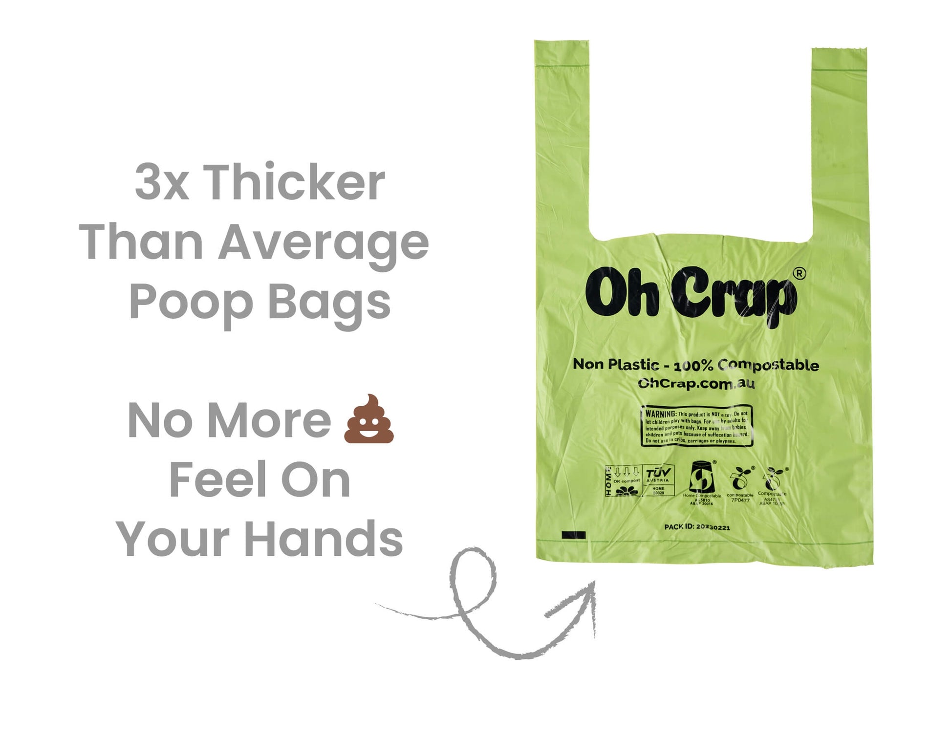Definitely! Our standard dog poop bags measure 23cm by 33cm, making them one of the largest available in Australia. This generous size, combined with the fact they are 3x thicker than average poop bags means they're more than capable of handling waste from larger breeds. No matter the size of your furry friend, you can trust Oh Crap bags to do the job without any "oh crap" moments!